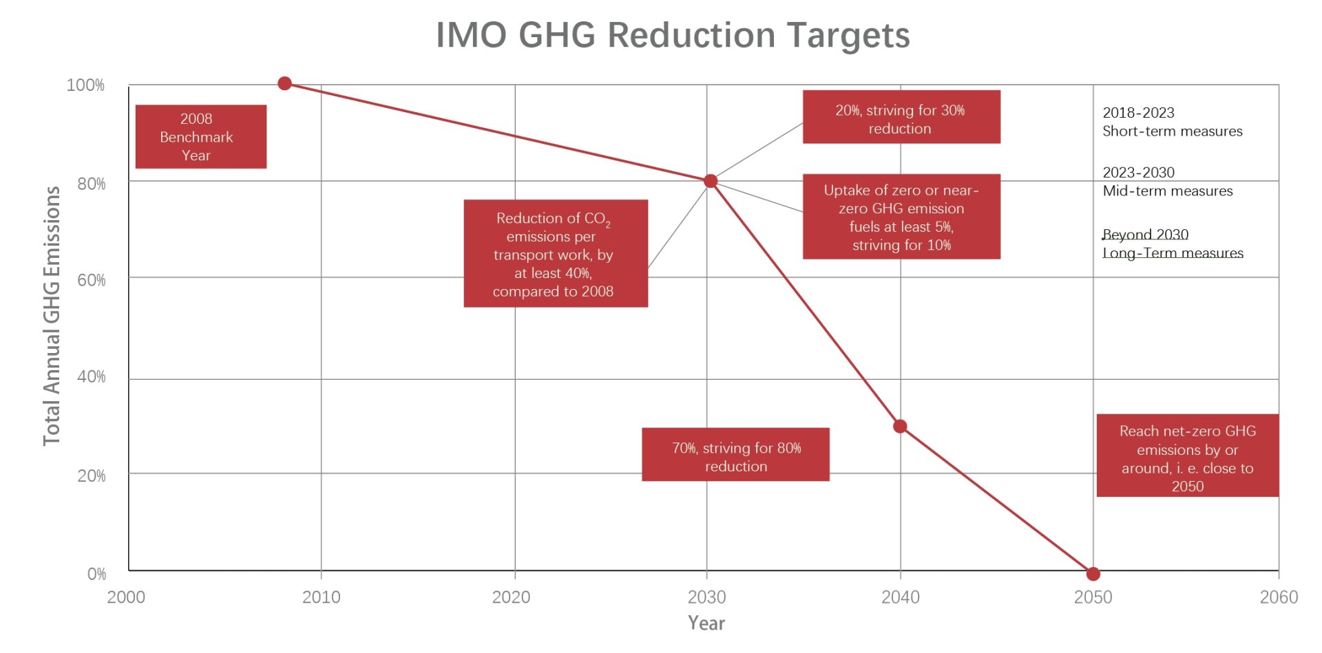 截至2030年,航運(yùn)溫室氣體減排較2008年標(biāo)準(zhǔn)至少20%,爭(zhēng)取實(shí)現(xiàn)30%;