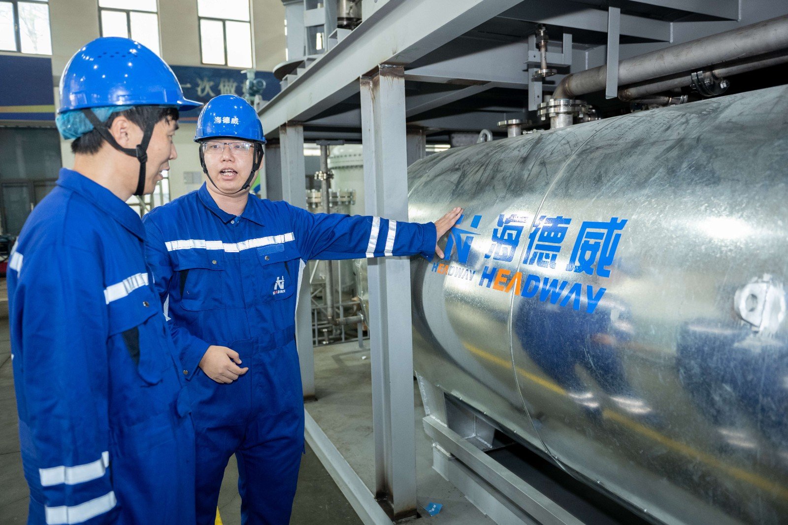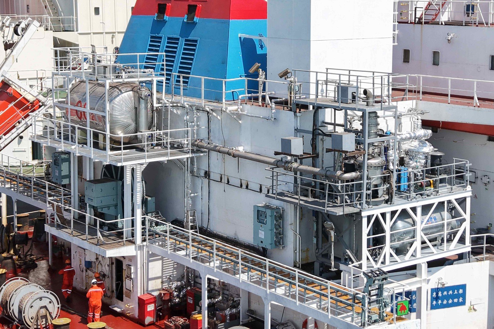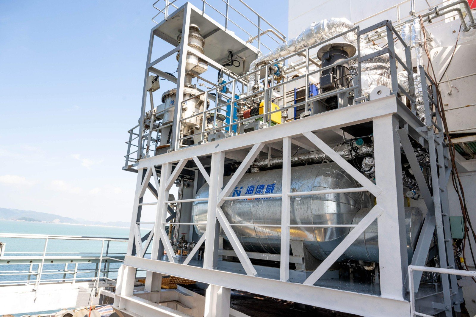 海洋衛(wèi)士?船載碳捕集系統(tǒng)依托海德威自主設(shè)計(jì)的高速離心脫碳技術(shù)和高性能吸收劑,以高速旋轉(zhuǎn)形成的離心力場(chǎng)替代傳統(tǒng)重力場(chǎng),顯著提升了氣液兩相傳質(zhì)效率,系統(tǒng)脫碳效率超過90%,二氧化碳捕集純度可達(dá)99.6%以上,具有脫碳效率高、體積小、能耗低、安裝及儲(chǔ)運(yùn)便捷等優(yōu)勢(shì)。