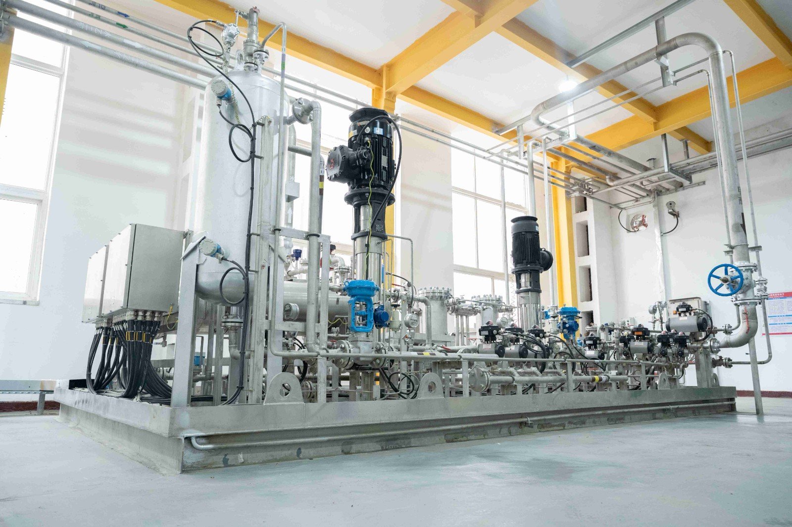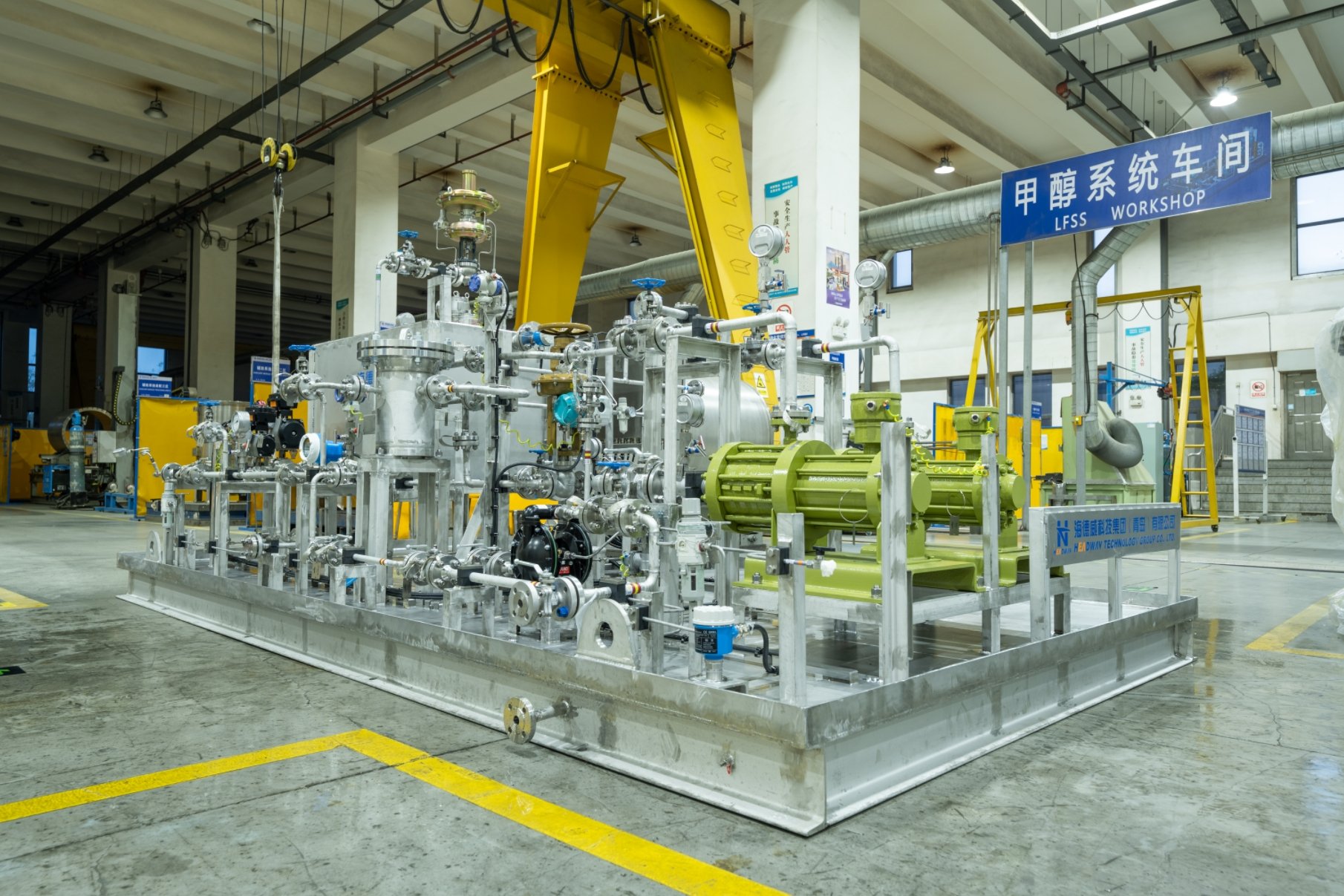中船發(fā)動機(jī)有限公司大柴公司甲醇雙燃料試車平臺,配備了由海德威科技集團(tuán)提供的涵蓋甲醇燃料供給模塊、加注儲存系 統(tǒng)、輔助換熱系統(tǒng)、氮?dú)庀到y(tǒng)以及控制安保系統(tǒng)等核心模塊在內(nèi)的一站式系統(tǒng)解決方案。該方案及其配套模塊由海德威自主 研發(fā)和生產(chǎn),是國產(chǎn)首個成功應(yīng)用的甲醇燃料供給系統(tǒng)成熟解決方案。