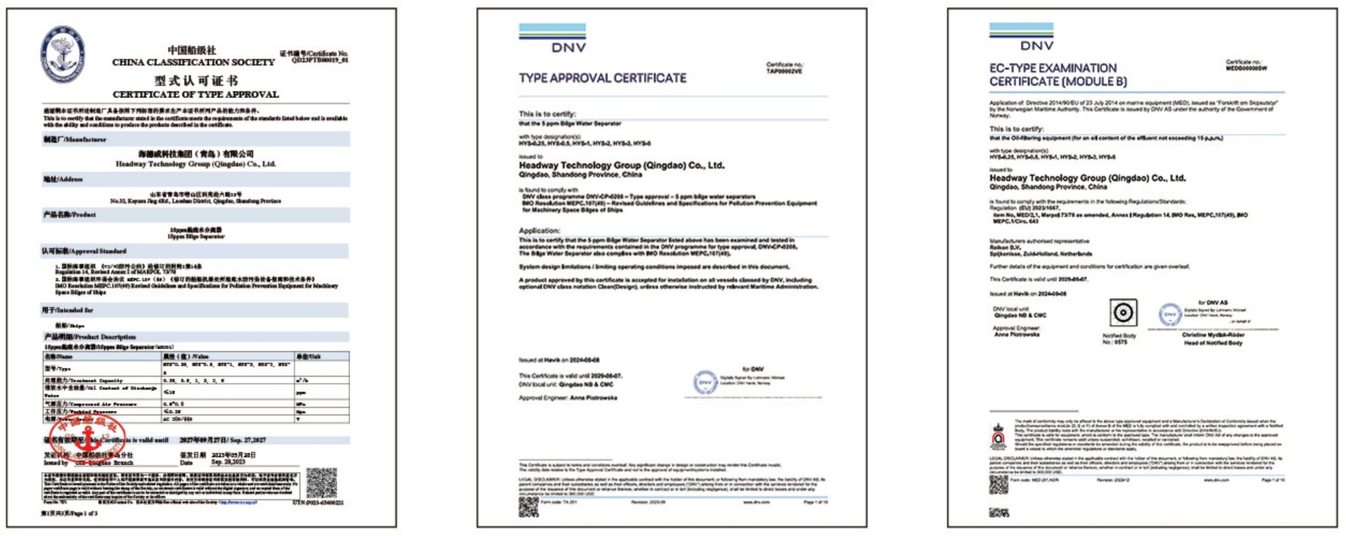 目前,海洋衛(wèi)士?艙底水分離器已取得CCS、DNV型式認(rèn)可證書(shū)和EC認(rèn)可證書(shū)。